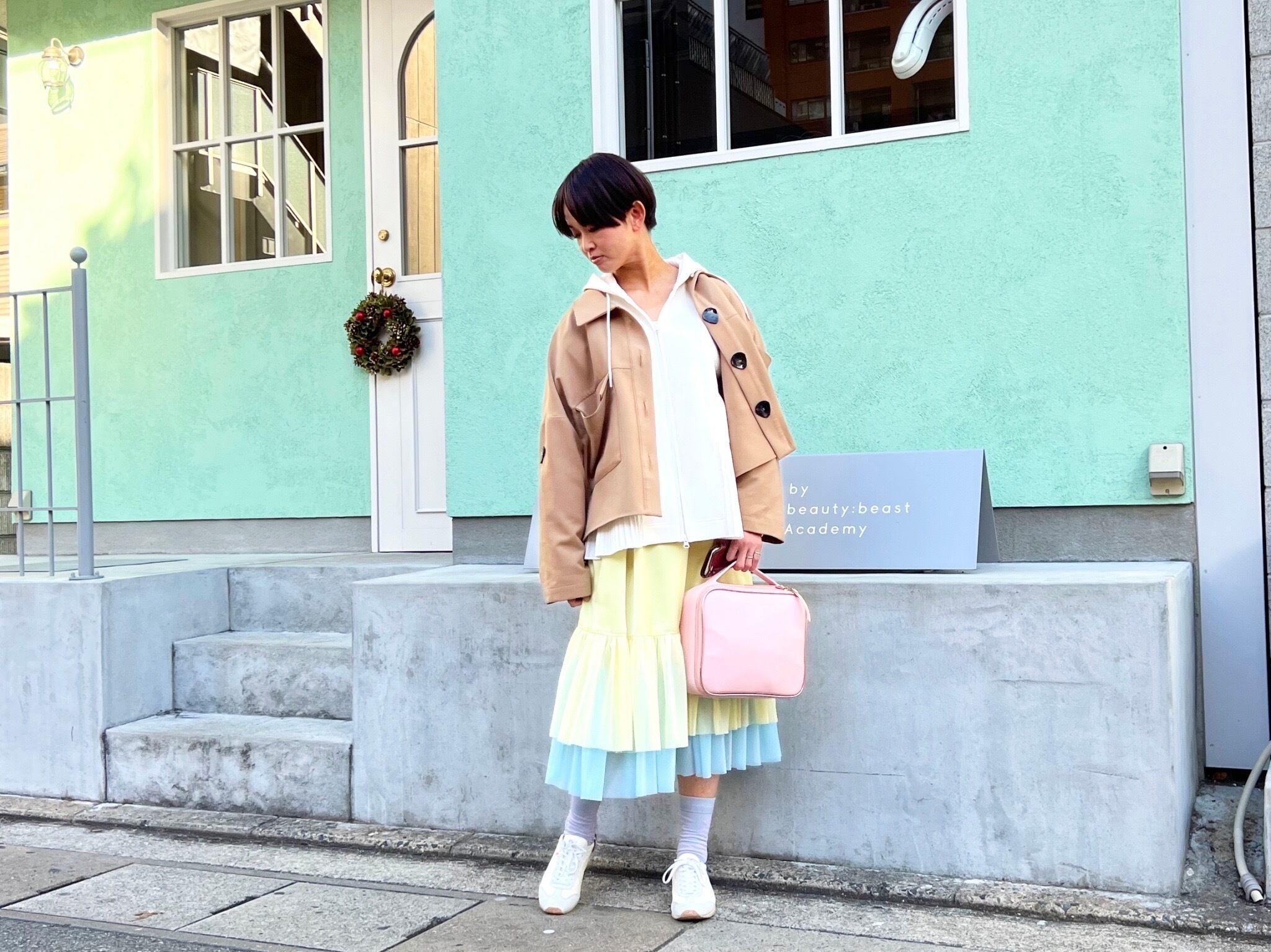 何を合わせても可愛く決まるカラーで、最高のコーディネートを楽しむことができます。ロング丈で、ちらりとのぞく足元にも注目です。カジュアルな中にも女性らしさを漂わせる“asobou peccico”らしいデザインになっております。是非、お買い足いただければと思います。