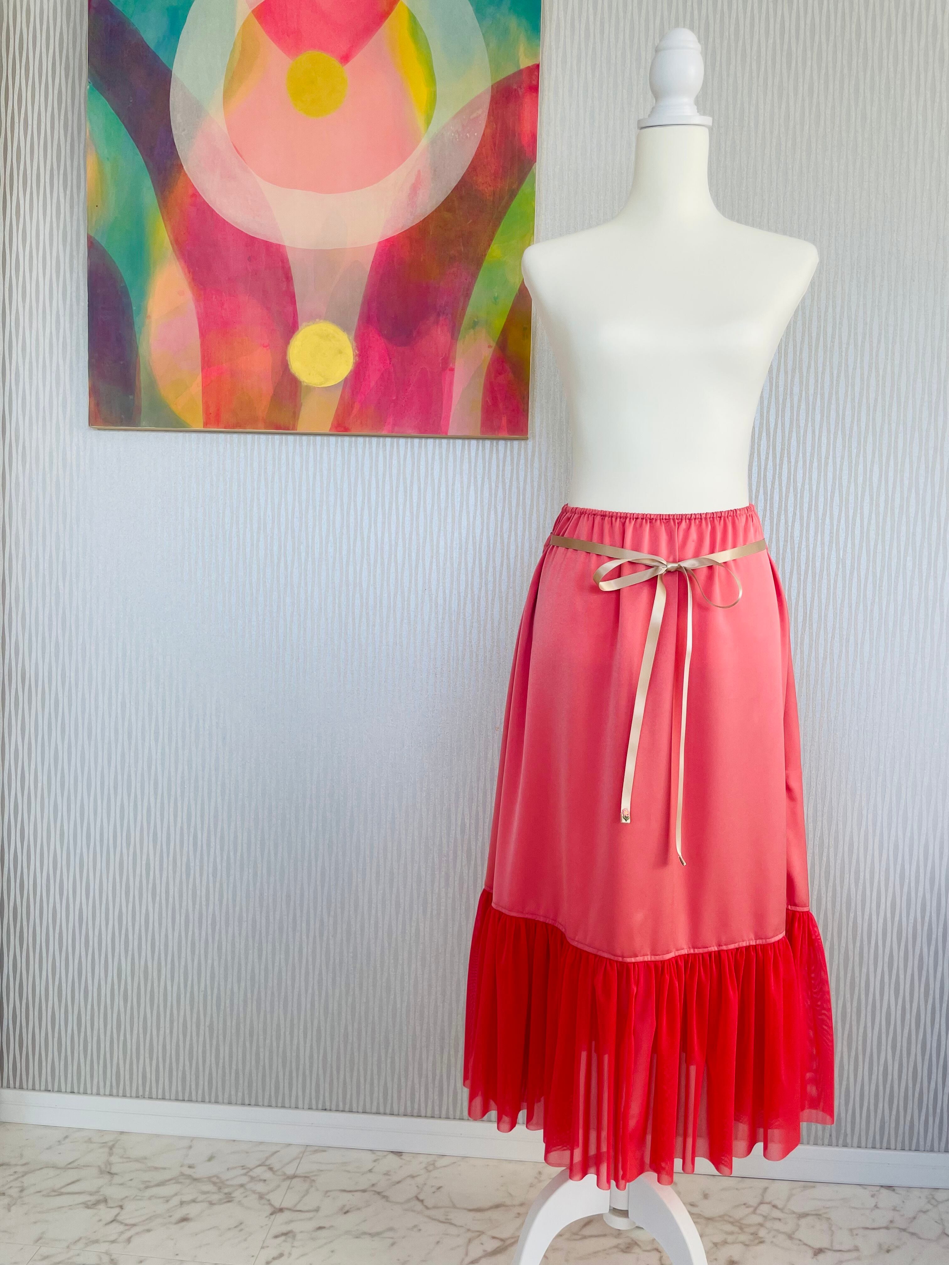 ペチコ ペチコート asobou peccico チュール付き ロング丈 ロング丈プラス6 コーラル